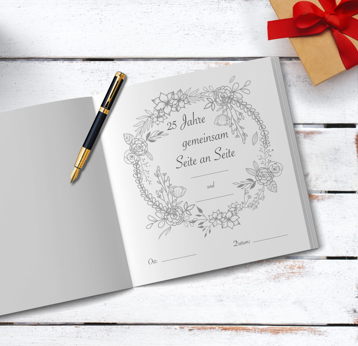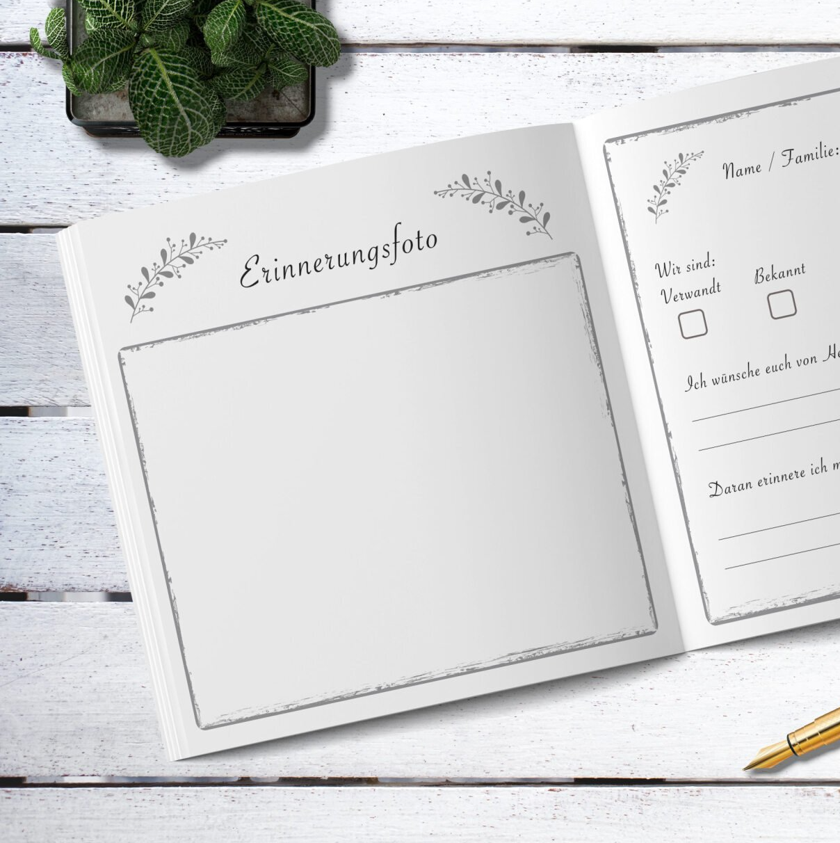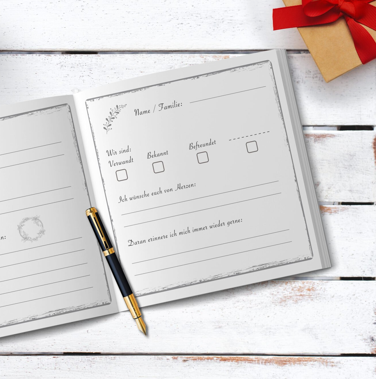 Legen Sie das Buch einfach am Eingang auf einen Tisch und lassen Sie die Gäste kreativ werden.
